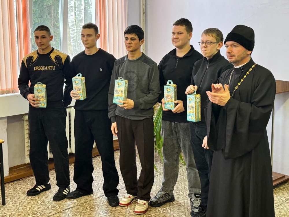 Перед игрой в аудиториях нашего техникума священники - иерей Сергий Курдов, иерей Евгений Тойменев, диакон Кирилл Трофимов и Александра Трофимова провели со студентами беседы в формате живого диалога. Разговор был посвящен традиционным ценностям, семье и нравственным ориентирам в жизни современного человека.