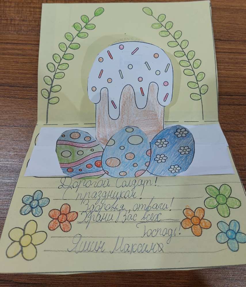 Работы были выполнены на высоком уровне. Благодаря активному участию детей Пасхальные открытки в ближайшее время будут отправлены на фронт нашим военнослужащим.