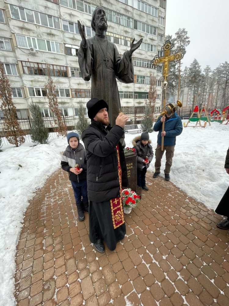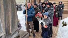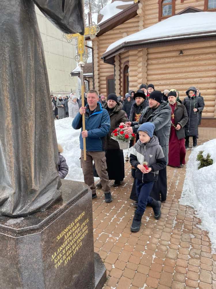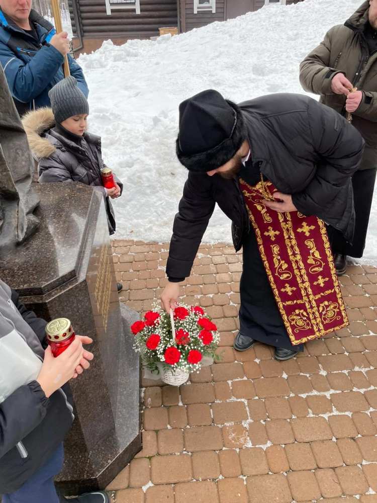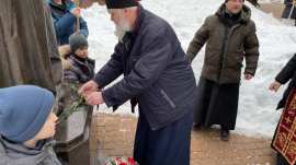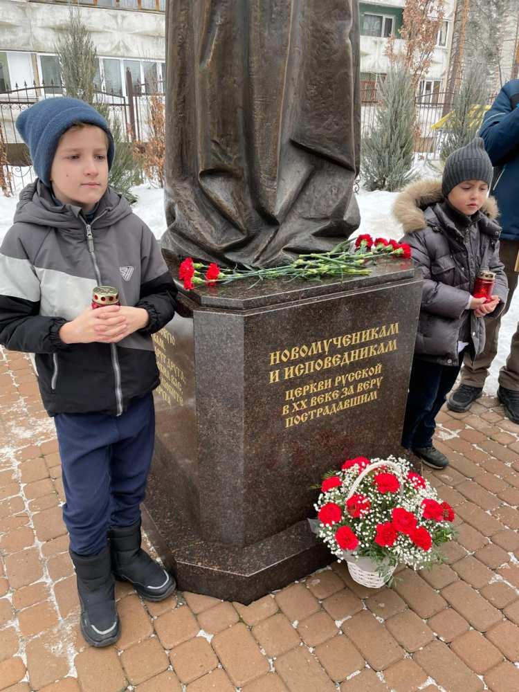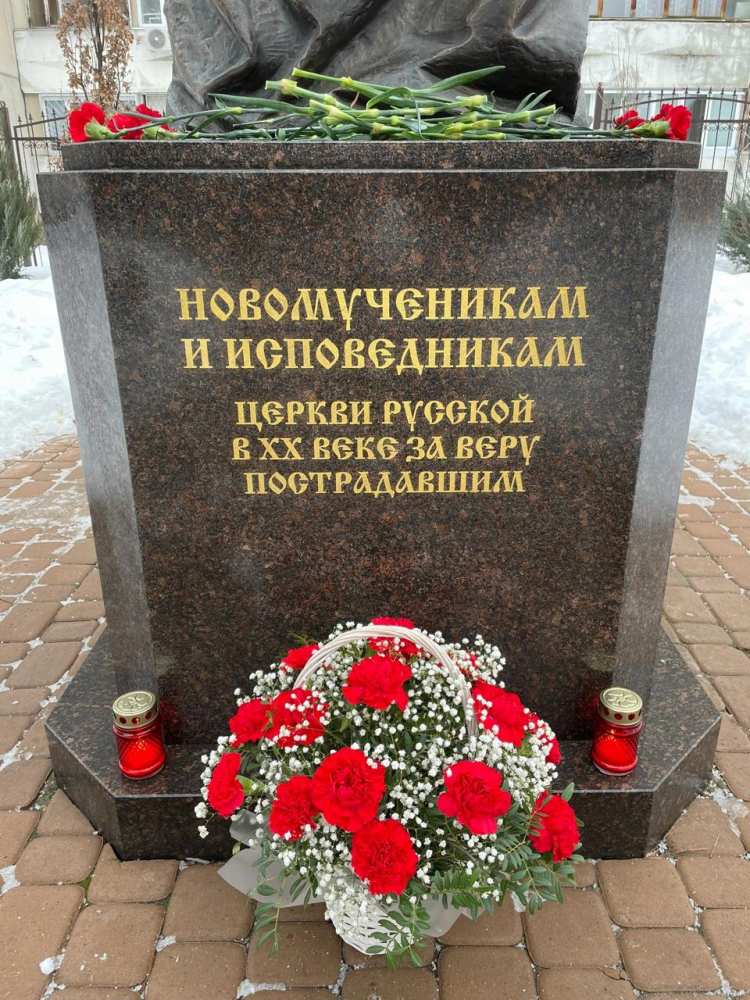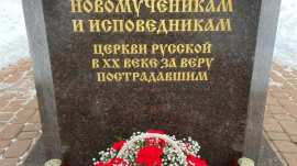 К памятнику, посвященному новомученикам и исповедникам Церкви Русской, духовенство и прихожане возложили цветы
