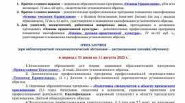 1. Кратко о самом важном – церковная образовательная программа «Основы Православия», (для всех желающих) 72 ак.ч./42 ауд.ч., свидетельство установленного образца.