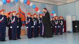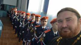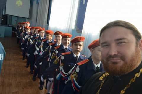 Перед принятием присяги со словами наставления к кадетам обратился протоиерей Петр Гурьянов. Пожелав кадетам быть достойными своего звания и добрым примером для окружающих, отец Петр преподал им благословение и окропил их святой водой.