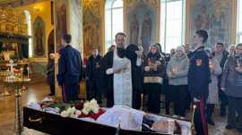 После литургии состоялось отпевание, которое возглавил секретарь Мелекесской епархии иеромонах Прокл (Бойко).