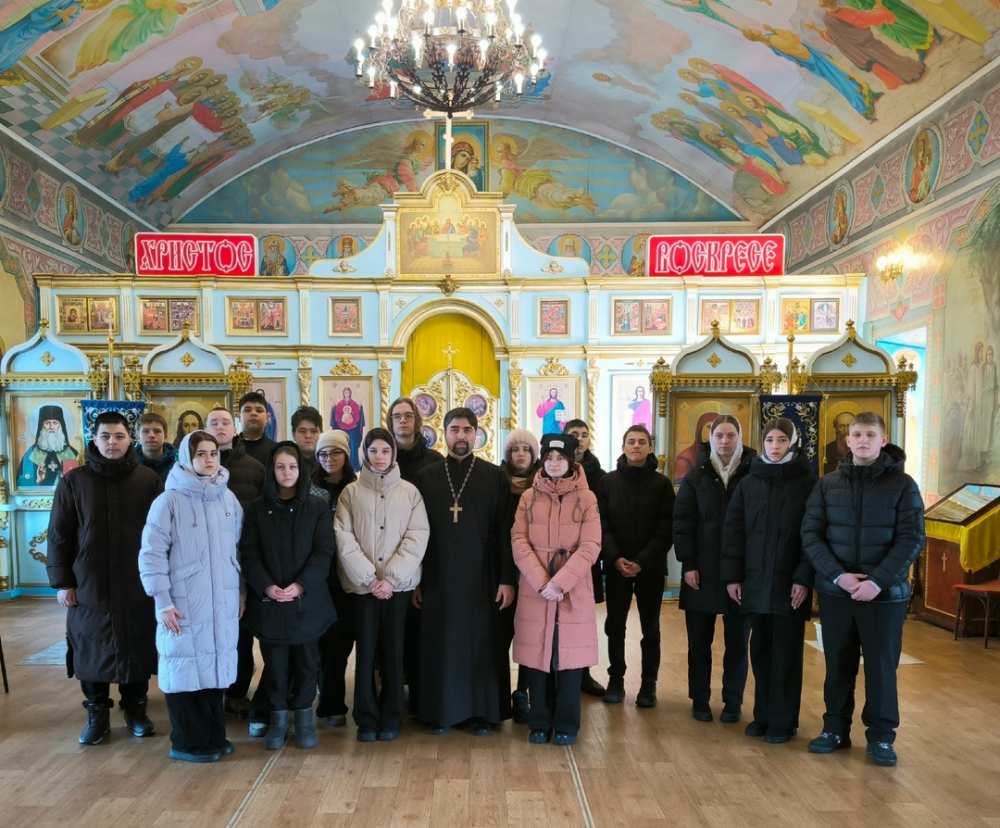 6 февраля 2025 года в Казанский храм р.п. Новая Майна пришли на экскурсию ученики 9 класса школы №1. Их сопровождали педагоги Елена Моисеева и Ольга Басаранович. Настоятель храма протоиерей Александр Ижуков рассказал об истории создания и внутреннем устройстве храма, об особенностях росписи и чтимых святынях.