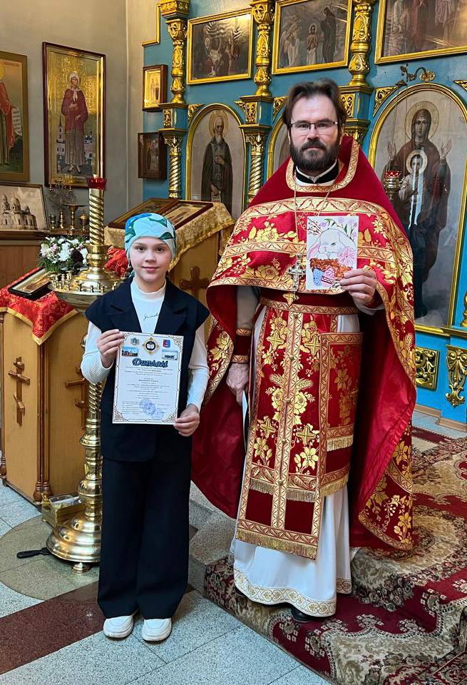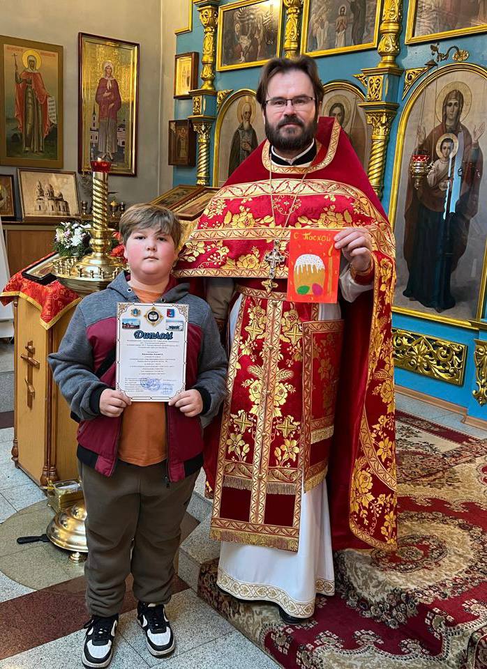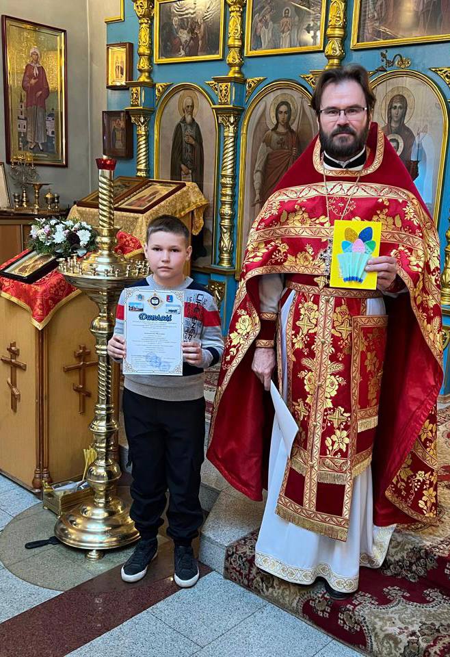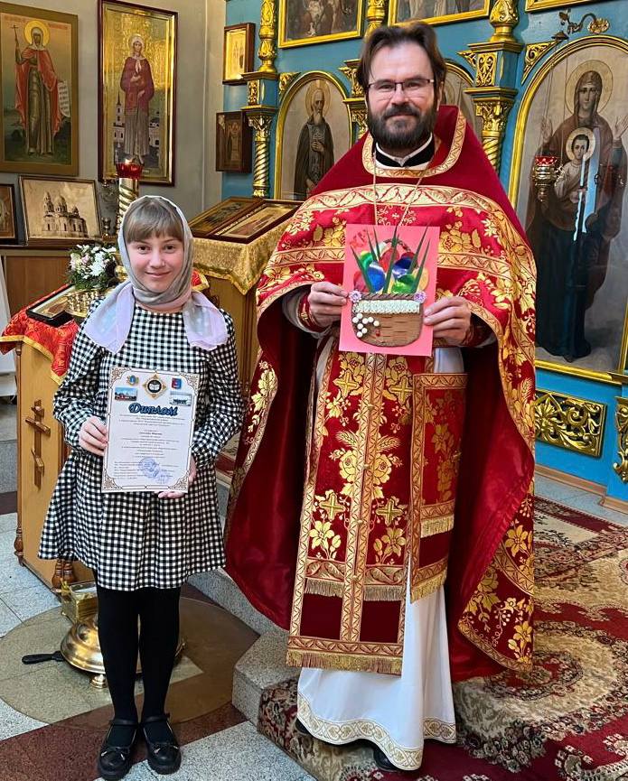27 апреля 2025 года после Божественной Литургии в Покровском храме р.п. Чердаклы состоялось награждение детей - победителей и участников межрегионального конкурса «Пасхальная открытка», а также куратора этого конкурса учителя начальных классов СШ N2 Лампеевой Дины Александровны.