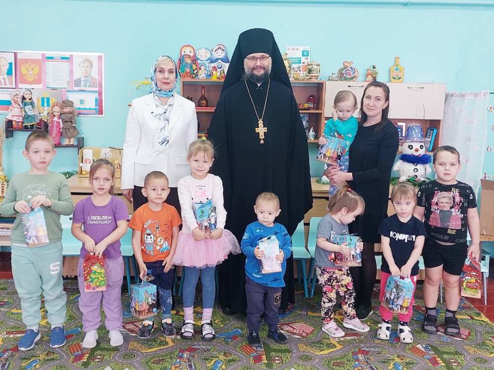 В Пятисотенном детском садике 15 января 2025 года проведено награждение победителей Приходского конкурса «Радость Рождества». Настоятель храма св. мч. Татианы пос. Октябрьский иеромонах Иона (Черкасов) и сотрудник Приходского Координационного совета Елена Макарова поздравили воспитанников с праздником Рождества Христова и подвели итоги коллективного конкурса в номинации «Лучшая Рождественская открытка», вручив сладкие подарки и грамоты. Приходской Совет сердечно благодарит руководителя молодежного братства "Пересвет" Сергея Гурьянова за пожертвование и приобретение подарков для детей.
