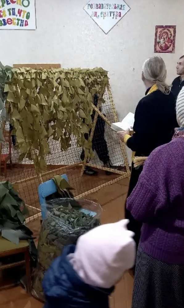 Жители села ежедневно трудятся, плетут сети, помогают нашим воинам. Настоятель храма святителя Николая Чудотворца иерей Николай Маляганов освятил сотую маскировочную сеть, значимое число для всех кто трудился для наших воинов .