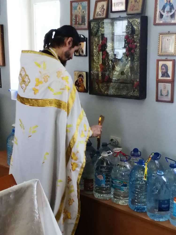 Ннастоятель иерей Евгений по окончании Литургии освятил воду.
