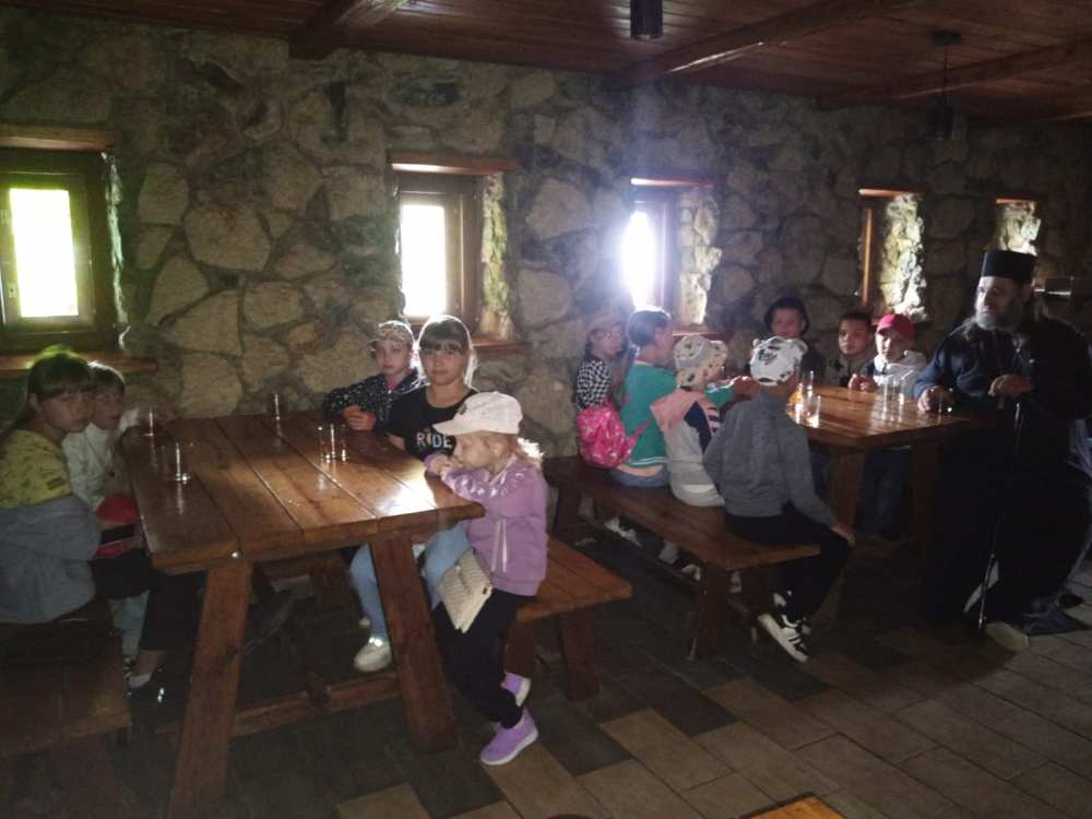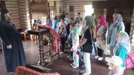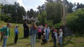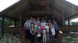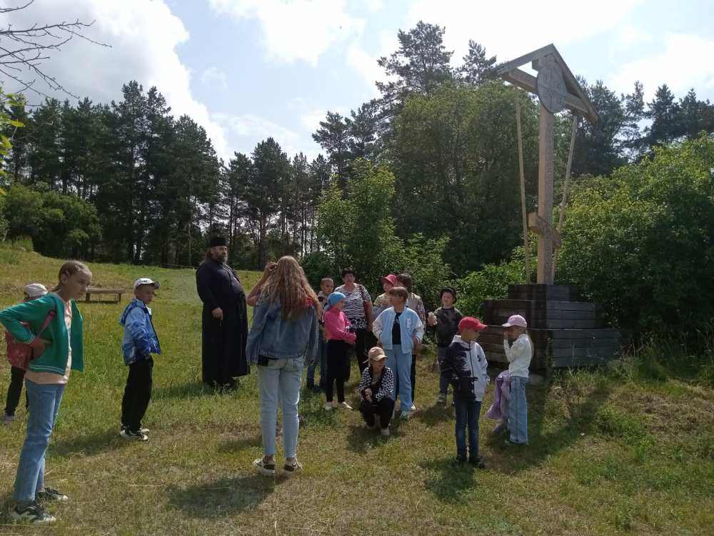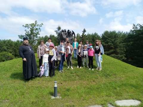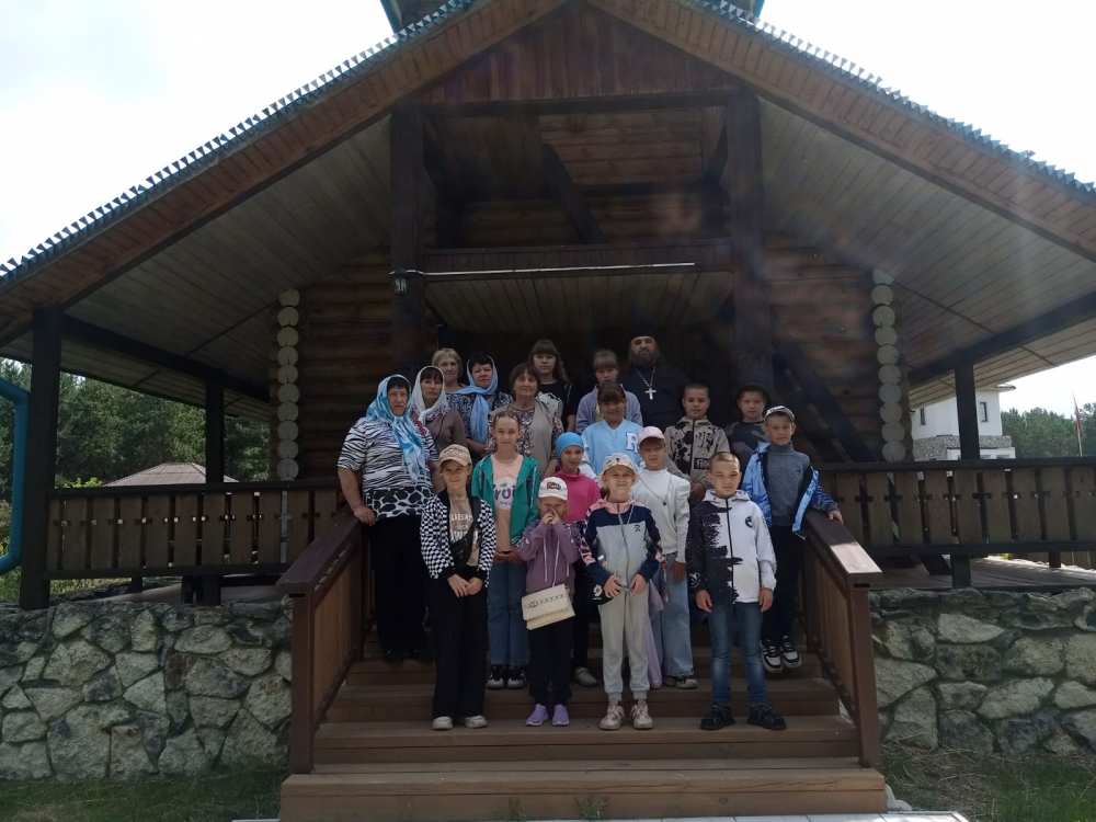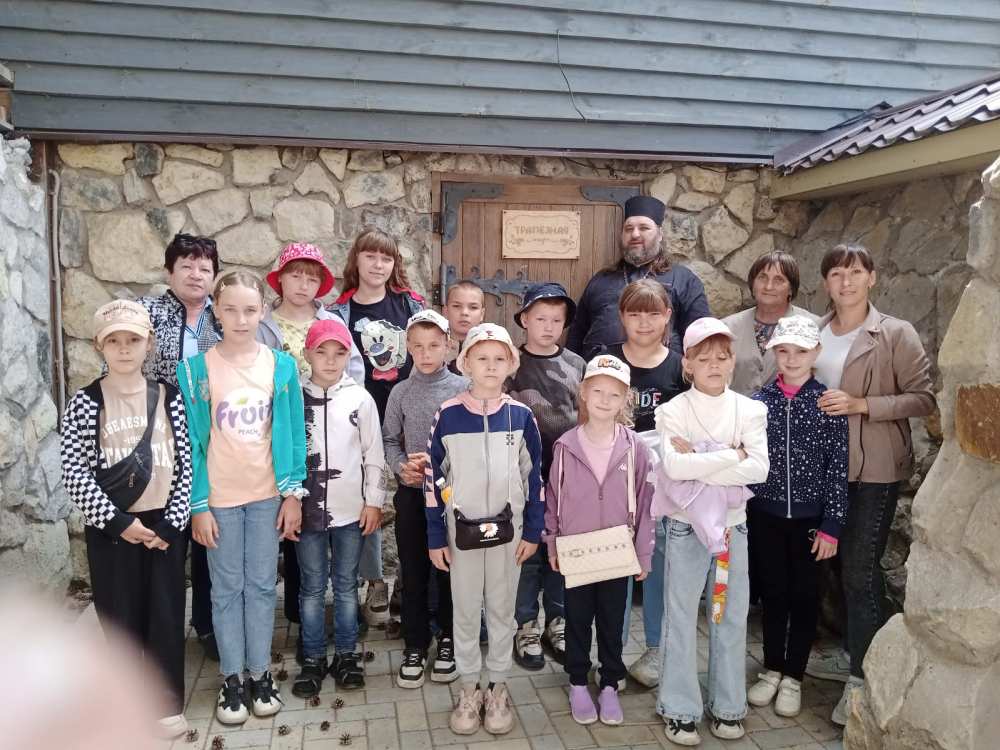 Двадцать деток с учителями были на экскурсии в храме, прогулялись по территории базы отдыха на предполагаемом месте уничтоженного женского монастыря во время лихолетья, так же была беседа возле скульптуры Святой Троицы, о триипостаности единого и не раздельного Бога, о важности поста и молитвы и о единение человека в духе.