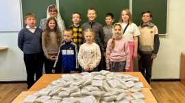 Для подготовки очередного гуманитарного конвоя воинам СВО 29 ноября 2025 года учащиеся Воскресной школы "Источник" Свято-Татианинского храма, под руководством педагогов Плечовой О.И., Петровой И.