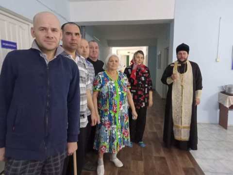 Батюшка встретился в пациентами одного из отделений, провел для них молебен и поздравил с наступающим праздником. Отец Алексей пожелал всем собравшимся крепкого здоровья и скорейшего восстановления.