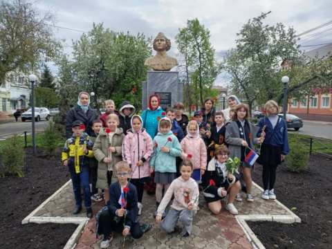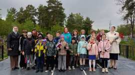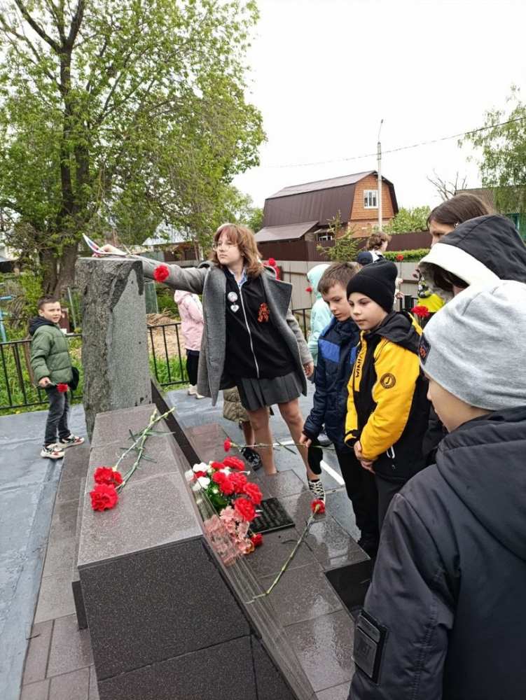 Затем дети, педагоги и родители возложили красные гвоздики к Мемориалу умерших в госпиталях Мелекесса воинов и к памятнику военного врача Марии Мусоровой. Конечно, у этих памятных мест прозвучали и тропарь Пасхи, и песня "День Победы", и стихи о войне.