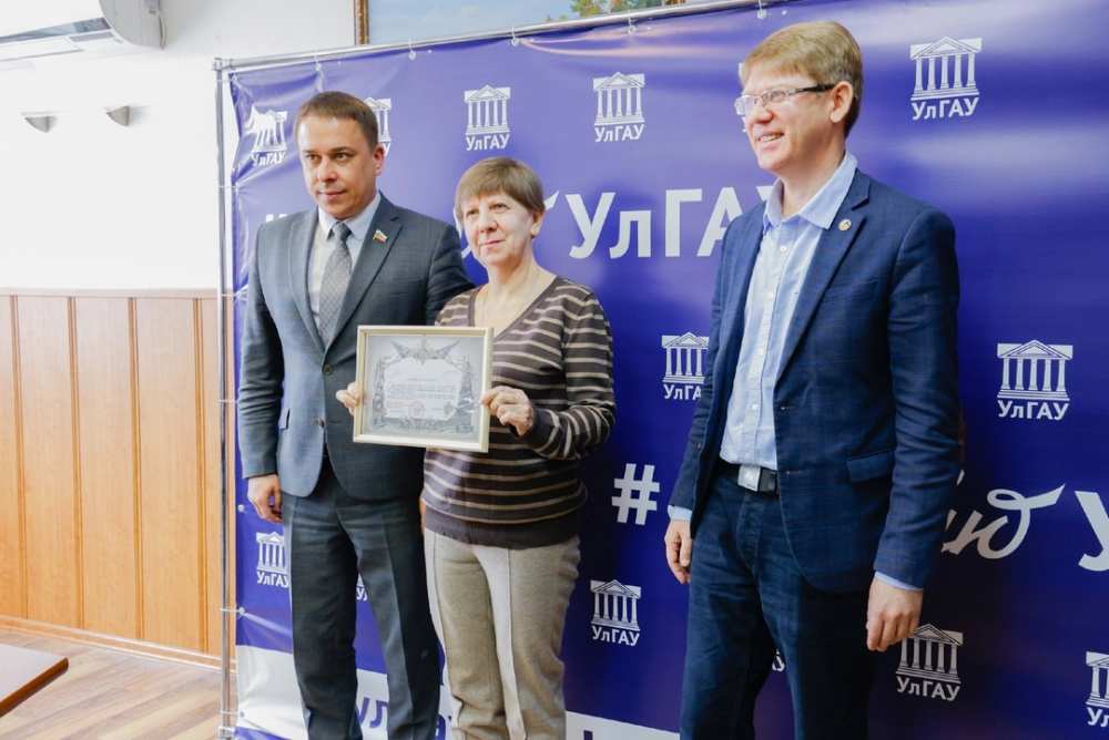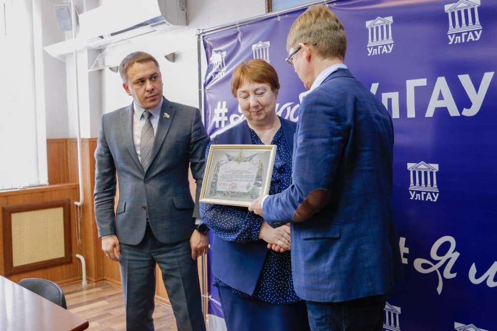 Вначале в малом конференц-зале прошел круглый стол, где после приветственных слов официальных лиц прошло торжественное награждение сотрудников и студентов УлГАУ, оказывающих деятельную помощь воинам СВО.