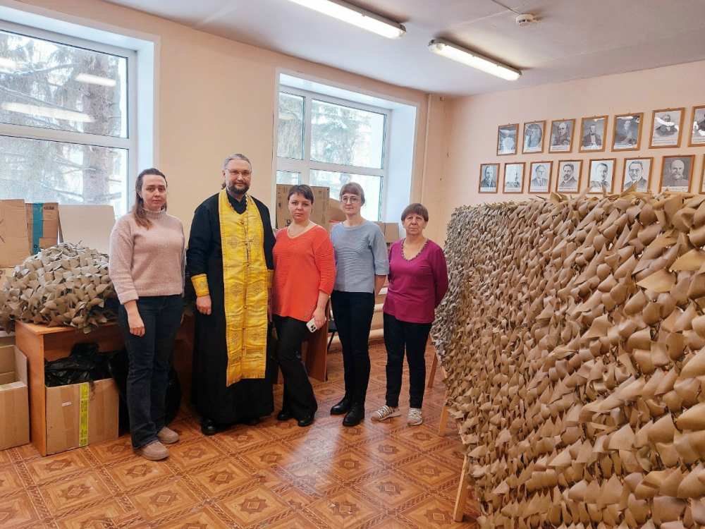 Руководитель Епархиального отдела по взаимодействию с Вооруженными силами и правоохранительными органами Мелекесской епархии иеромонах Иона (Черкасов) 29 января 2026 года в учебном корпусе экономического факультета УлГАУ освятил маскировочные сети, поблагодарил волонтеров за их жертвенный труд и пожелал им Божией помощи.