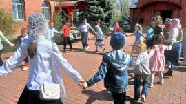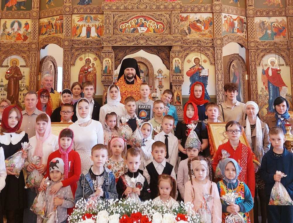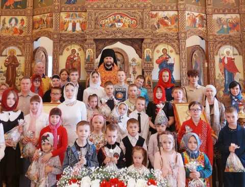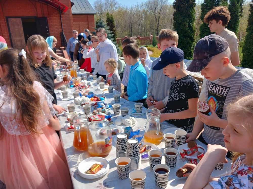 В мероприятии приняли участие: учащиеся детской gриходской воскресной школы «Источник», а также дети поселка и их родители. После Пасхального молебна настоятель храма иеромонах Иона (Черкасов) обратился к детям с праздничным поздравлением Светлого Христова Воскресения и вручил Пасхальные сладкие подарки.