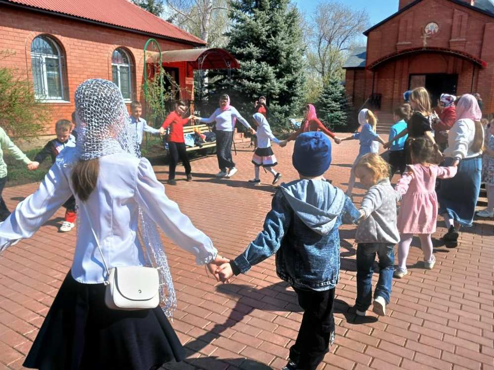 Затем на прихрамовой территории были организованы Пасхальные игры и чаепитие. Много удивительных моментов Пасхальной радости отражалось в глазах детей! Что-то такое истинно русское, празднично-православное в лицах, одежде — Пасхальная радость и счастье…