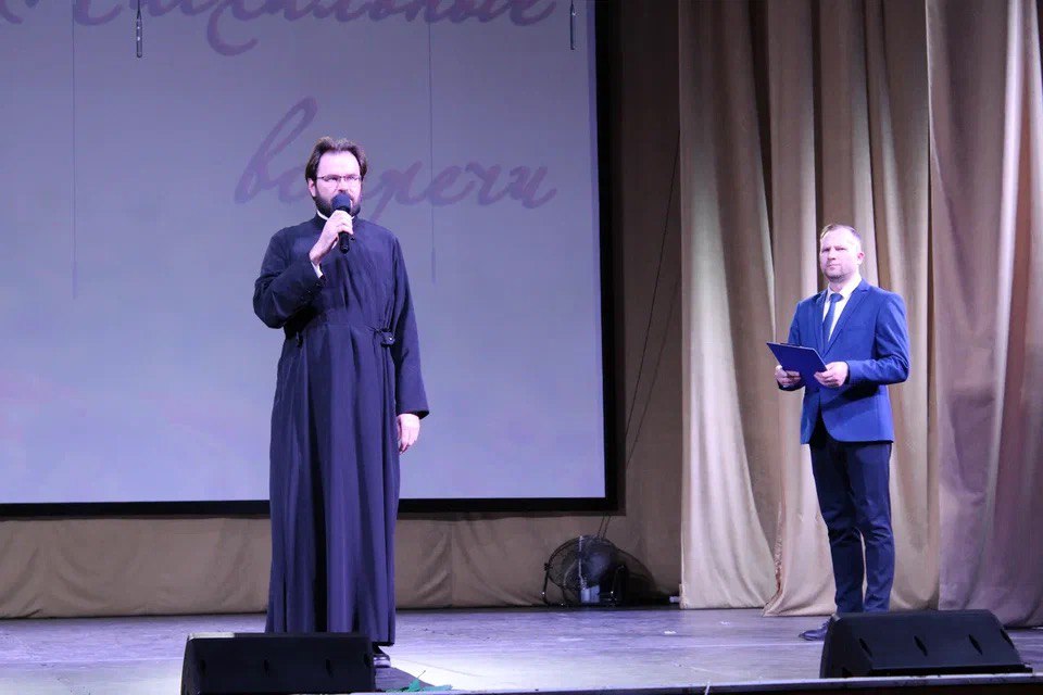 Среди приглашенных был прот. Олег Беляев, настоятель Покровского храма, который поздравил всех собравшихся с праздником Пасхи Христовой и пожелал, чтобы каждый из них встретил на своем жизненном пути Христа.