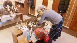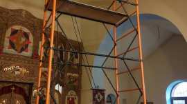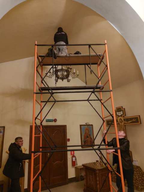 В храме святой мученицы Татианы п. Октябрьский 7 декабря 2025 года к празднику Рождества Христова проводится чистка трех больших паникадил. Для удобства протирания их временно сняли из под купола.