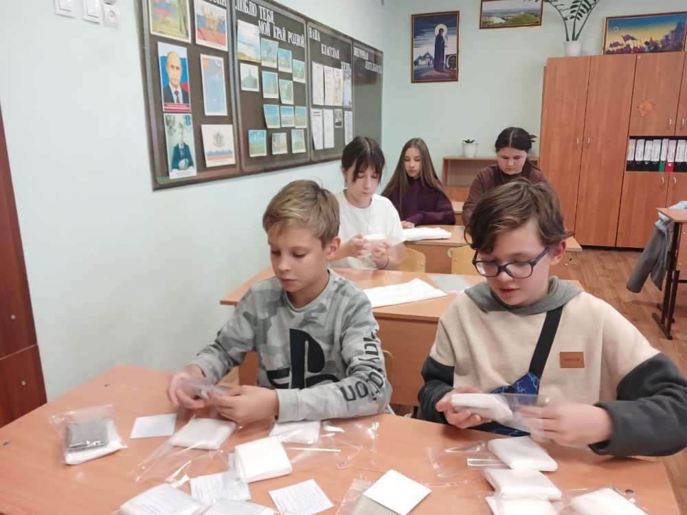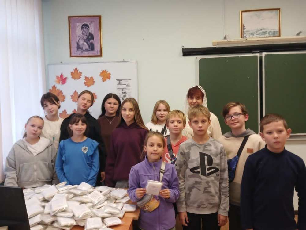 3 октября 2025 года учащиеся Воскресной школы Свято-Татианинского храма "Источник" совместно с учащимися Октябрьского сельского лицея 6 А класса под руководством педагогов с любовью подготовили 155 комплектов сухого душа для воинов СВО. В ближайшее время сухой душ будет отправлен на передовую нашим защитникам.