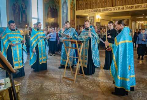 4 апреля 2025 года, в пятницу пятой недели Великого поста, в канун праздника Похвалы Пресвятой Богородицы на Архиерейском подворье при Свято - Никольском храме была отслужена утреня с чтением акафиста Божией Матери.