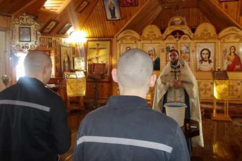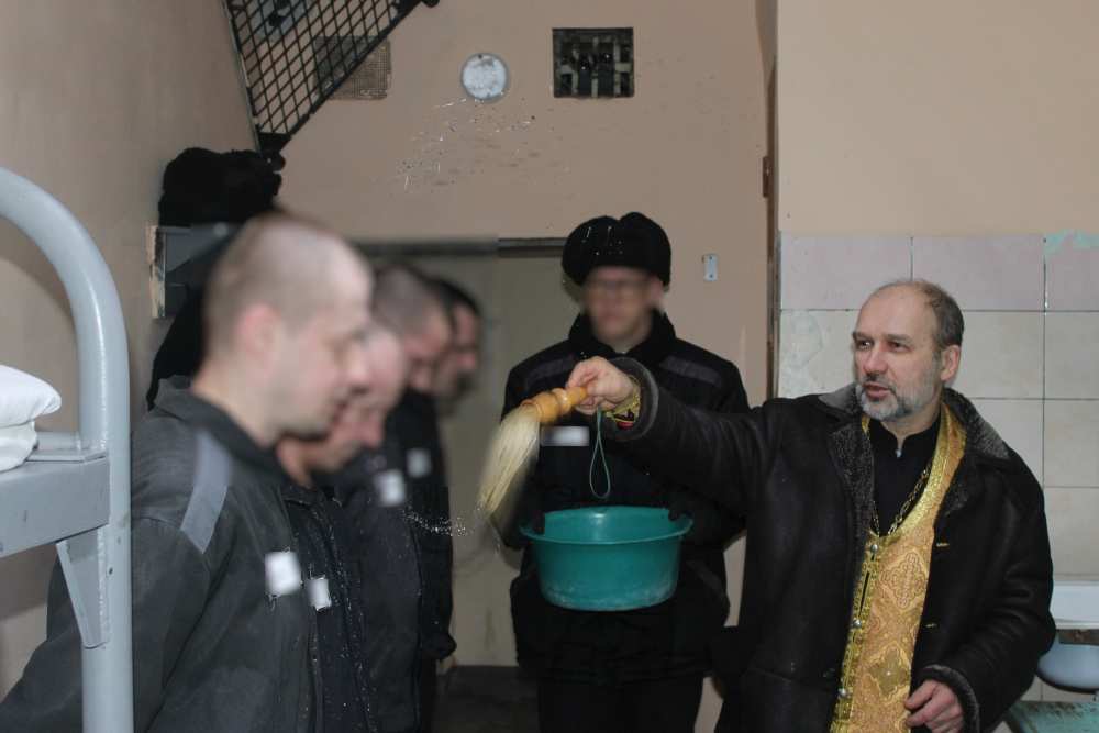 В этот день был совершен чин великого освящения воды, после которого отцы обратились к осужденным с проповедью.