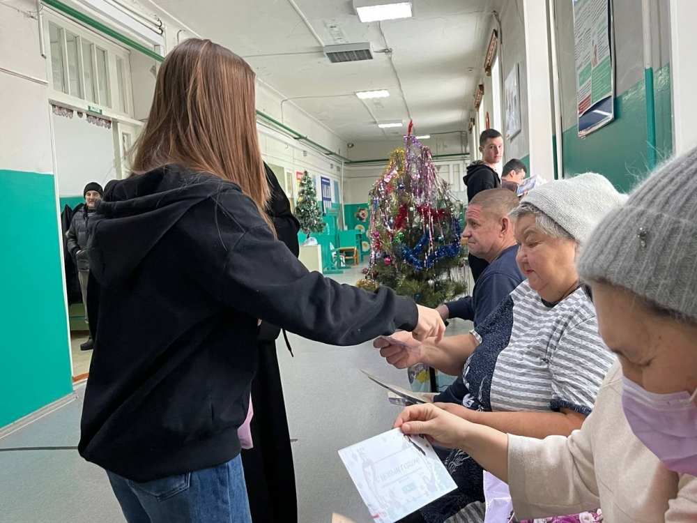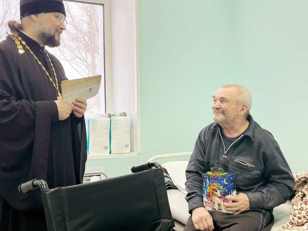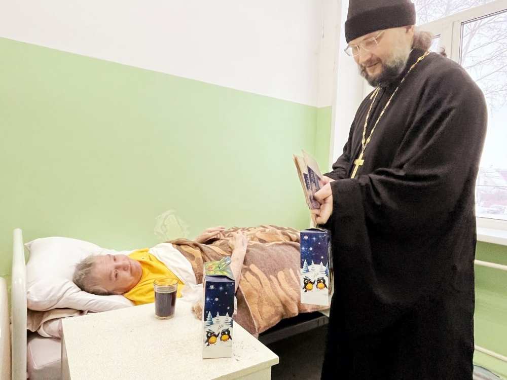 В период Рождественских святок, 9 января 2026 года, настоятель Свято-Татианинского храма иеромонах Иона (Черкасов) вместе с членами молодежного братства "Пересвет" поделились Рождественской радостью с пациентами и персоналом Октябрьской участковой больницы.