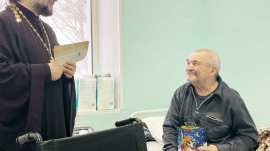 Батюшка вместе с Пересветовцами обошли все палаты и поздравили каждого с Рождеством Христовым.