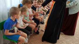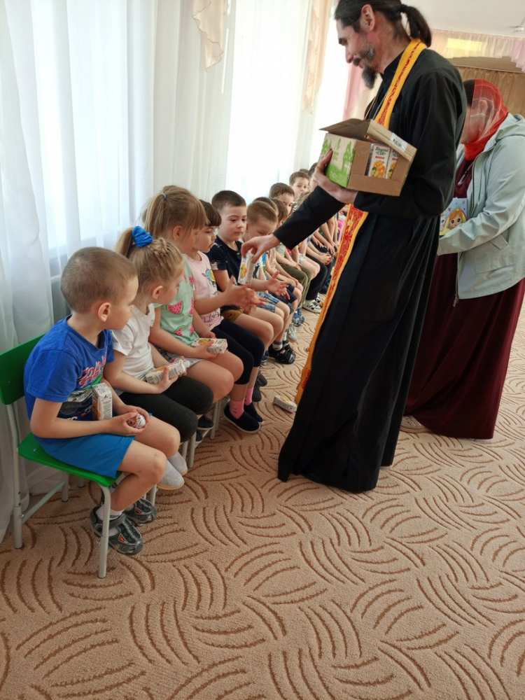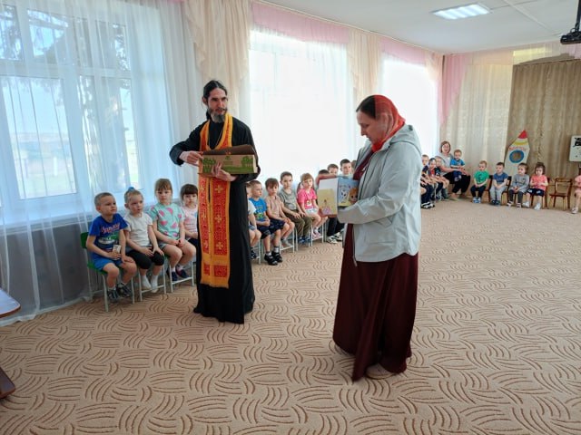 28 апреля 2025 года настоятель храма Собора Архистратига Михаила и прочих Небесных Сил бесплотных с. Озерки Чердаклинского района иерей Евгений Тойменев поздравил с праздником Пасхи Христовой воспитанников МДОУ Озерский детский сад "Одуванчик" и передал им сладкие подарки.