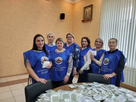В процессе подготовки очередного гуманитарного конвоя 12 ноября 2025 года сотрудники Приходской социальной службы "От сердца к сердцу " Свято-Татианинского храма Макарова Е.В. и Петрова И.Ф. в составе коллектива "Союз Православных женщин" Ульяновской области приняли участие в изготовлении комплектов сухого душа для воинов СВО. Православные женщины с любовью подготовили 333 комплекта сухого душа.