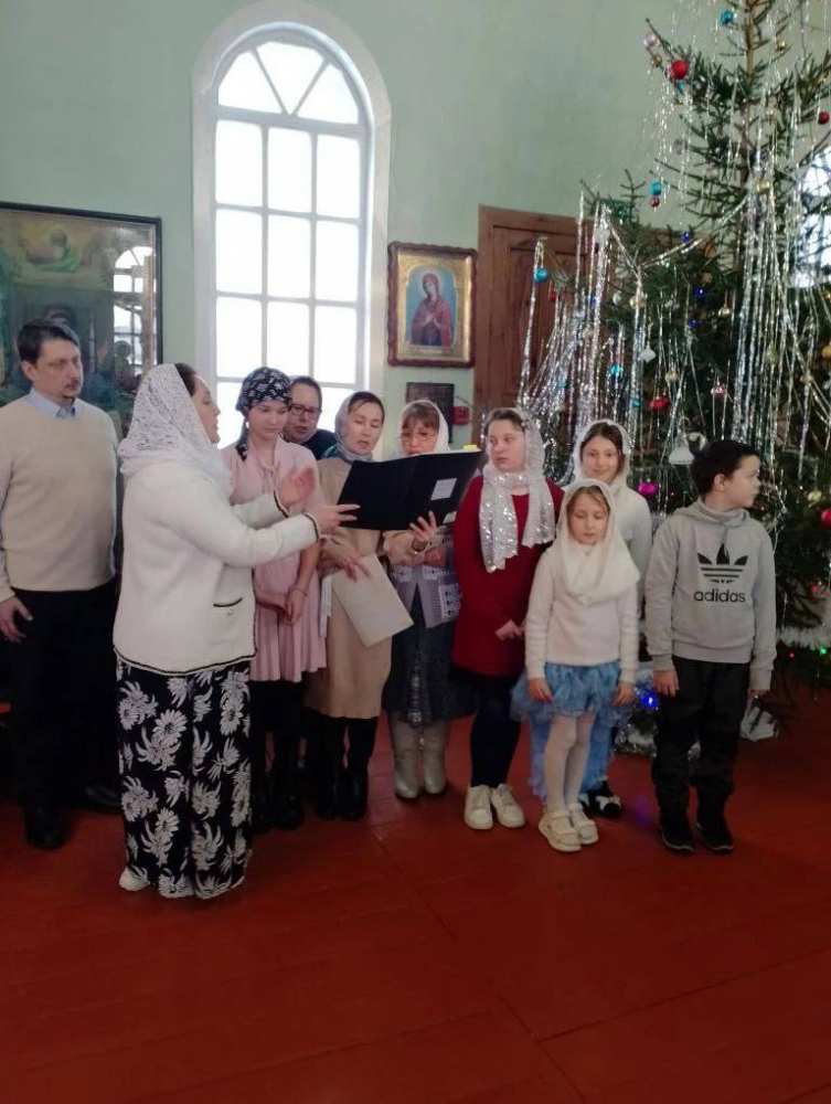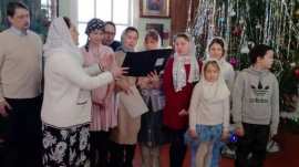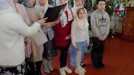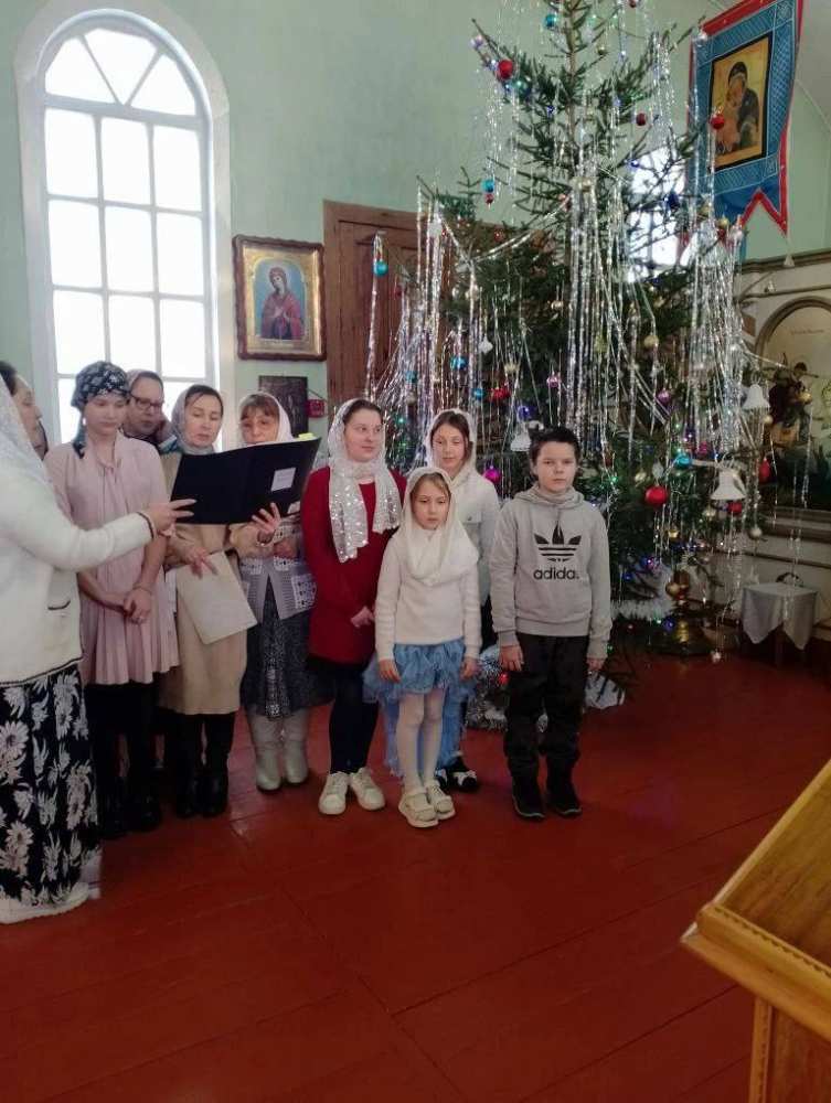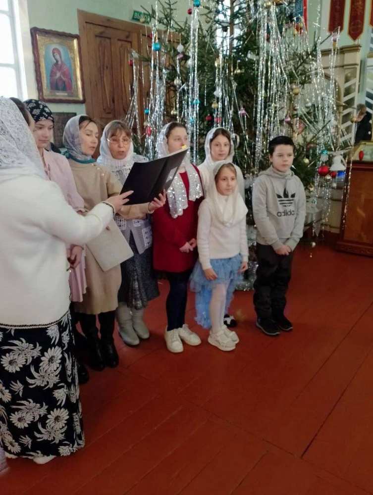Дети побывали на праздничной Литургии, помолились о своих родных, друзьях, знакомых. Рождество – время особенное, и каждый из ребят смог с верой попросить у Бога благословения на будущий год и осуществления заветных желаний. По окончании литургии дети встали перед алтарём и вместе с певчими исполнили тропарь Рождества Христова, колядку «Эта ночь святая».