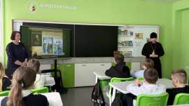 14 марта 2026 года отмечается День православной книги- праздник, который напоминает нам о силе слова и его способности вести к духовным высотам. Он приурочен к дате выпуска первой на Руси печатной книги Ивана Федорова «Апостол», вышедшей в свет 14 марта 1564 года. 12 марта в МБОУ « Зерносовхозская СШ имени М. Н.Костина» в преддверии праздника был проведен час духовности «Живой родник православной книги».  В этот день состоялась встреча обучающихся 6 класса с настоятелем храма Архистратига Михаила протоиереем Андреем Спиридоновым. Открыла мероприятие педагог- библиотекарь школы Бакеева Е. А. Она рассказала о книгоиздании на Руси, судьбе первопечатника Ивана Федорова и познакомила с выставкой книг православных писателей. Особое внимание было уделено творчеству Ф. М. Достоевского, юбилей которого отмечается в 2026 году. Библиотекарь представила сборник отрывков из произведений писателя , адресованный детям. Затем с теплыми и проникновенными словами о важности чтения к ребятам обратился отец Андрей. Он отметил, что православная книга - мудрый учитель жизни, помогающий найти ответы на многие насущные вопросы и погрузиться в мир духовной благодати. Она учит человека добру, состраданию, воспитывает в нем любовь к Отечеству и родному языку. В завершении встречи отец Андрей посоветовал выбирать для чтения душеполезные книги, бережно относиться к слову, сохранять чистоту и красоту нашего языка. Ребята с большим интересом слушали батюшку, его слова заставили их задуматься о значении чтения в жизни человека.