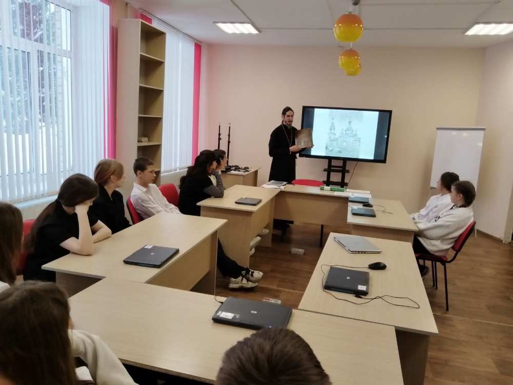В ходе выступления о. Евгений напомнил ученикам о смысле и значении праздника Сретения Господня – как встречи человека и Бога, подчёркивая важность встречи человека с Богом в духовной жизни каждого христианина.  О глубоком духовном и практическом смысле праздника Православной молодежи.