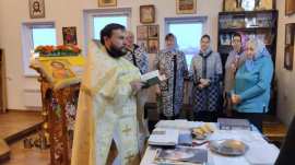 В этот праздничный день отец Алексей поздравил прихожан со столь знаменательным событием для прихода, а после провел занятие в воскресной школы для взрослых.