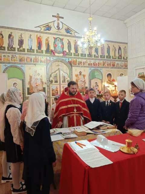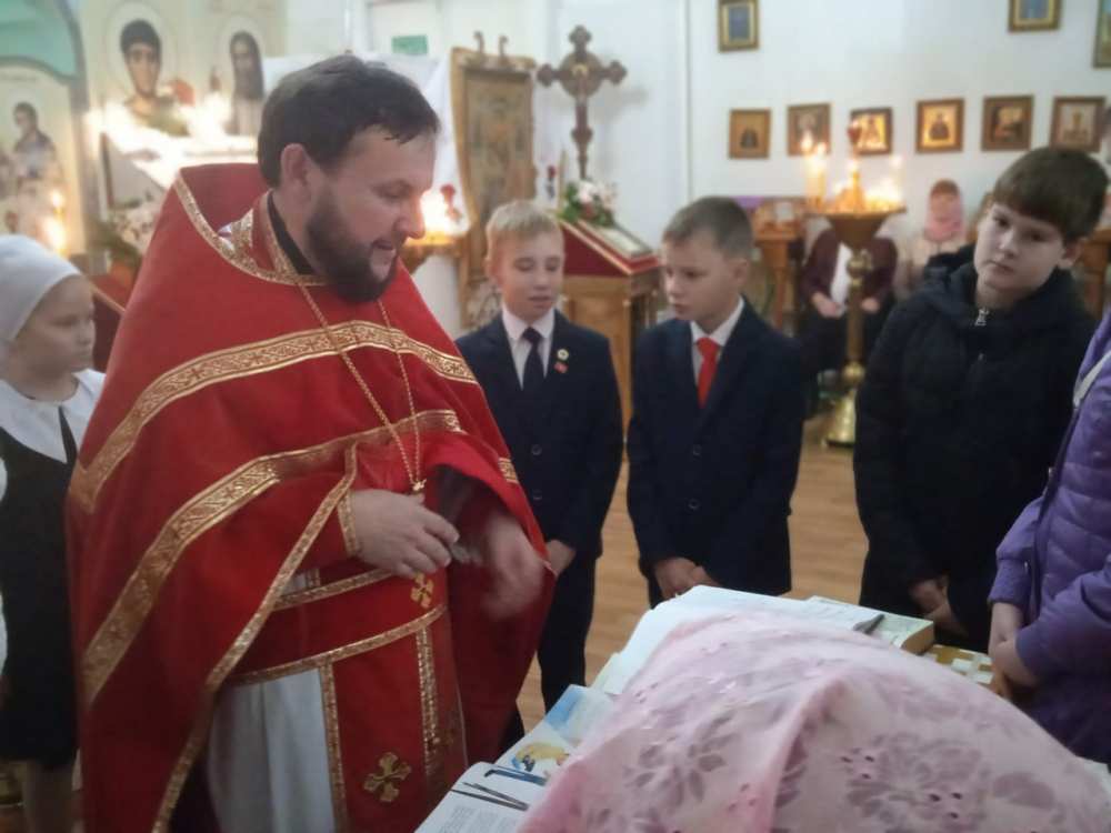 Отец Алексей провел для учеников православное занятие.