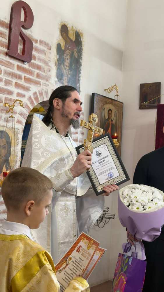 По окончании Литургии настоятель храма иерей Евгений Тойменев поздравил присутствующих с праздником Собора Архистратига Михаила, рассказал о значении праздника для верующих.