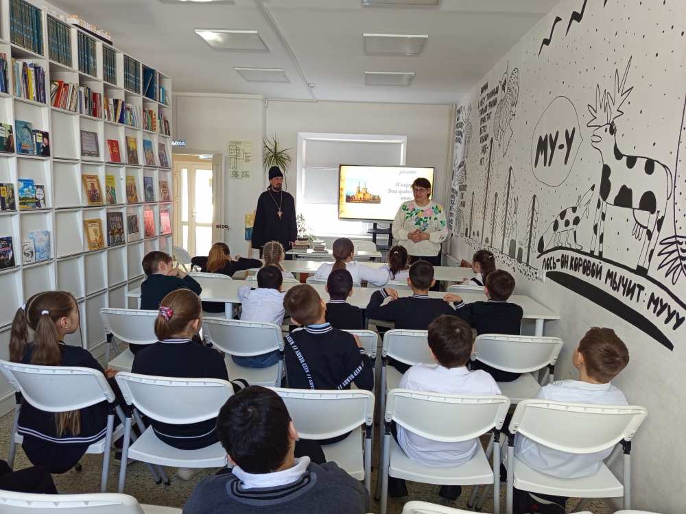 13 марта 2026 года в преддверии дня Православной книги, библиотеку "Информационно - досуговый центр" посетил клирик Свято - Никольского храма протоиерей Николай Кондрашкин, с целью провести с учениками 3-го класса средней школы №17 г. Димитровграда просветительскую беседу о значении православной литературы в духовном становлении личности.