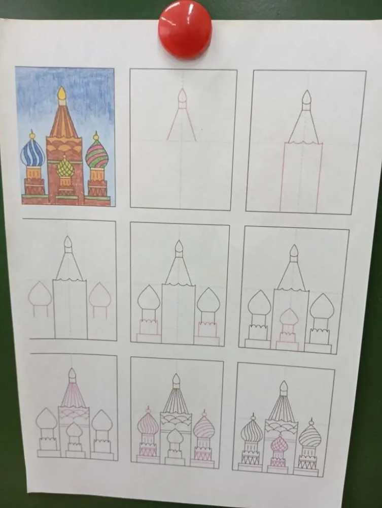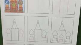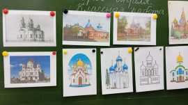 В практической части ребятам было предложено нарисовать храм. Акцент в рисунках был на сделан симметрии, куполах и крестах.