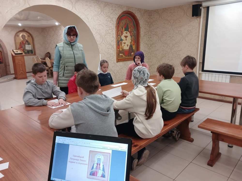 Дети с большим интересом обсудили подготовленную педагогами презентацию, узнали основные этапы жизни и служения Патриарха Тихона – человека с огромным сердцем, наполненным любовью к родной стране и православной вере. Затем, для учащихся была организована интеллектуальная игра по теме служения святителя Тихона.