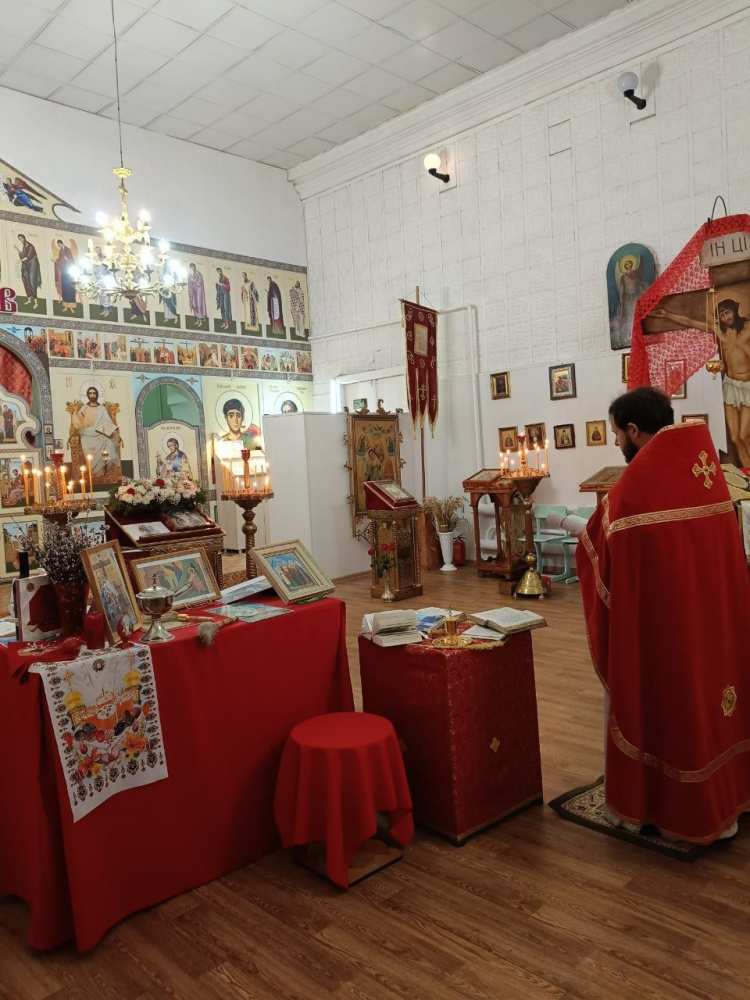 В этот день протоиерей Алексий Исаев служил Божественную Литургию. Батюшка поздравил прихожан с праздником и рассказал о бытие святого.