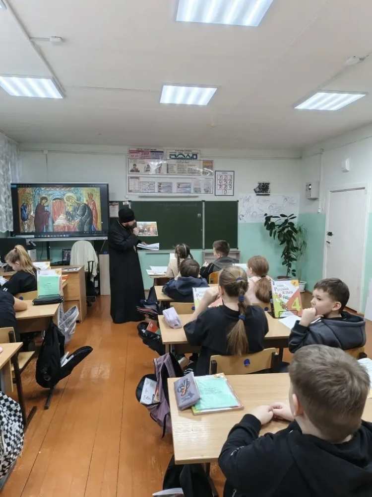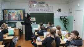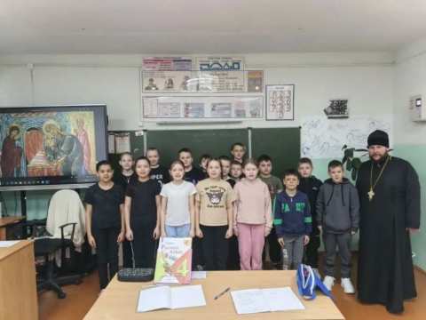 Батюшка встретился с учениками и провел для них познавательный час о Православной вере, о цикле Рождественских праздников в евангельском событии — Сретение Господня. Отец Алексей познакомил учащихся с историей предстоящего праздника, ответил на вопросы детишек.