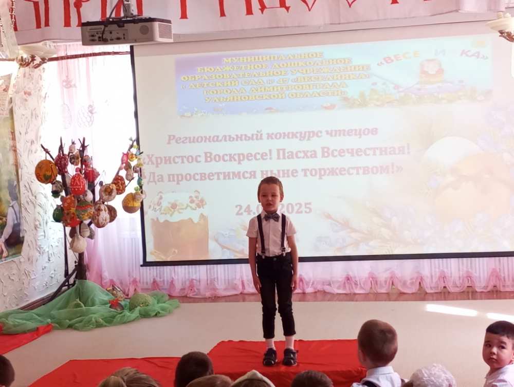 24 апреля 2025 года в детском саду №47 "Веселинка" состоялся Региональный конкурс чтецов среди детей дошкольного возраста «Христос Воскресе! Пасха Всечестная! Да просветимся ныне торжеством!».