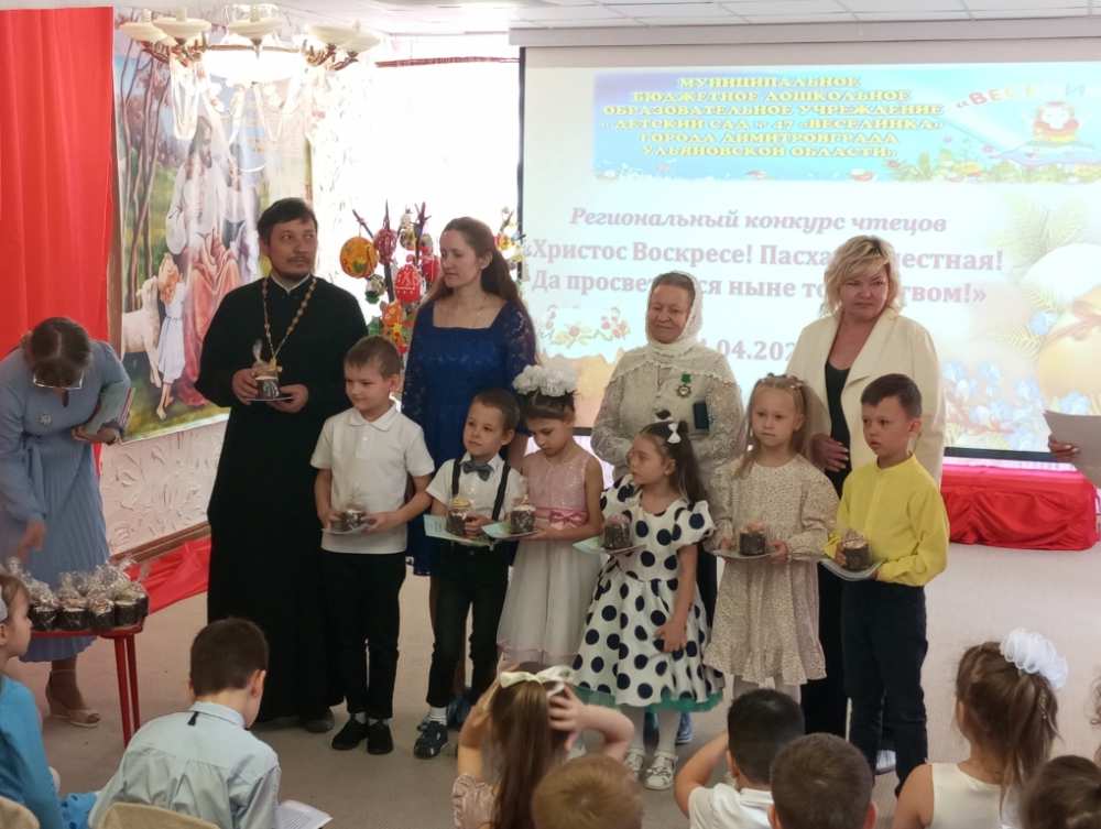По доброй традиции - победители и участники конкурса получили дипломы и подарки (книги, пасхальные куличики и пряники), предоставленные Архиерейским подворьем при Свято-Никольском храме Мелекесской и Чердаклинской епархии