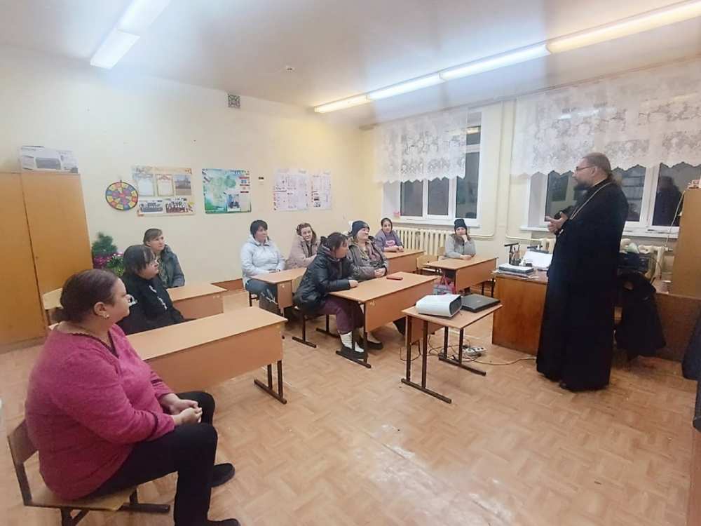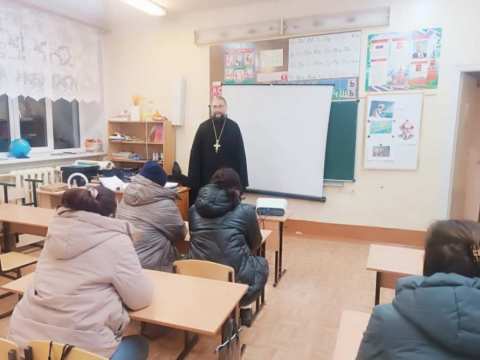 На родительском собрании выступил настоятель храма святой мученицы Татианы пос. Октябрьский иеромонах Иона (Черкасов), который рассказал о ключевой роли Православия в истории России; о содержании учебного предмета «Основы православной культуры»; о том, что родная православная традиция и культура помогает воспитывать в детях нравственные качества и добродетели. Итоги родительского собрания будут известны после проведенного анкетирования.