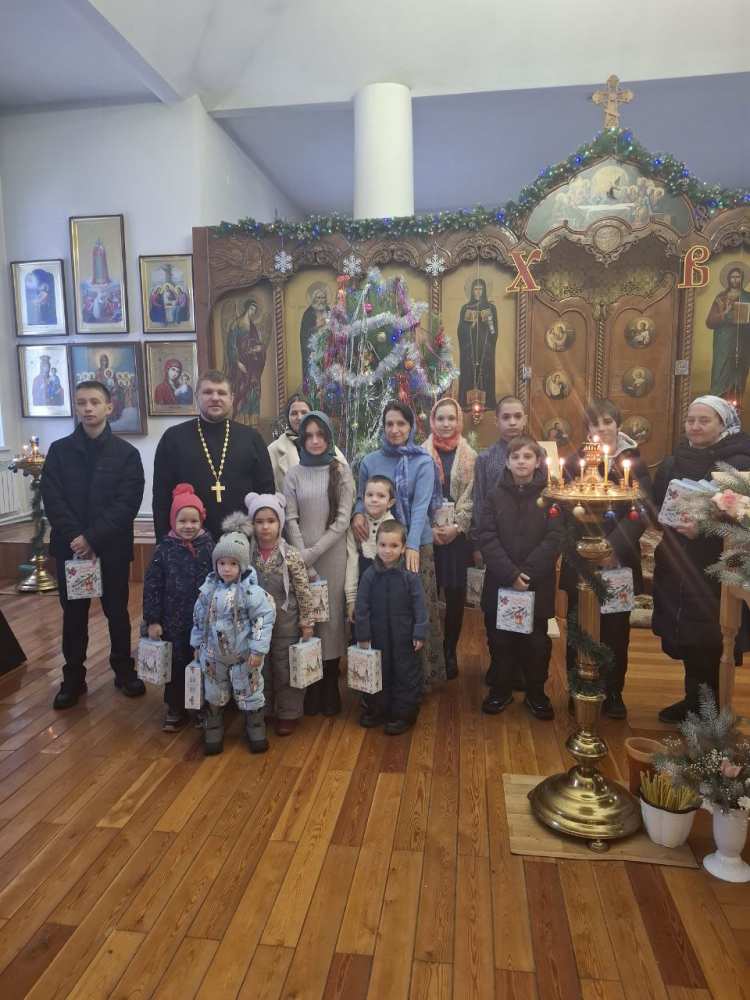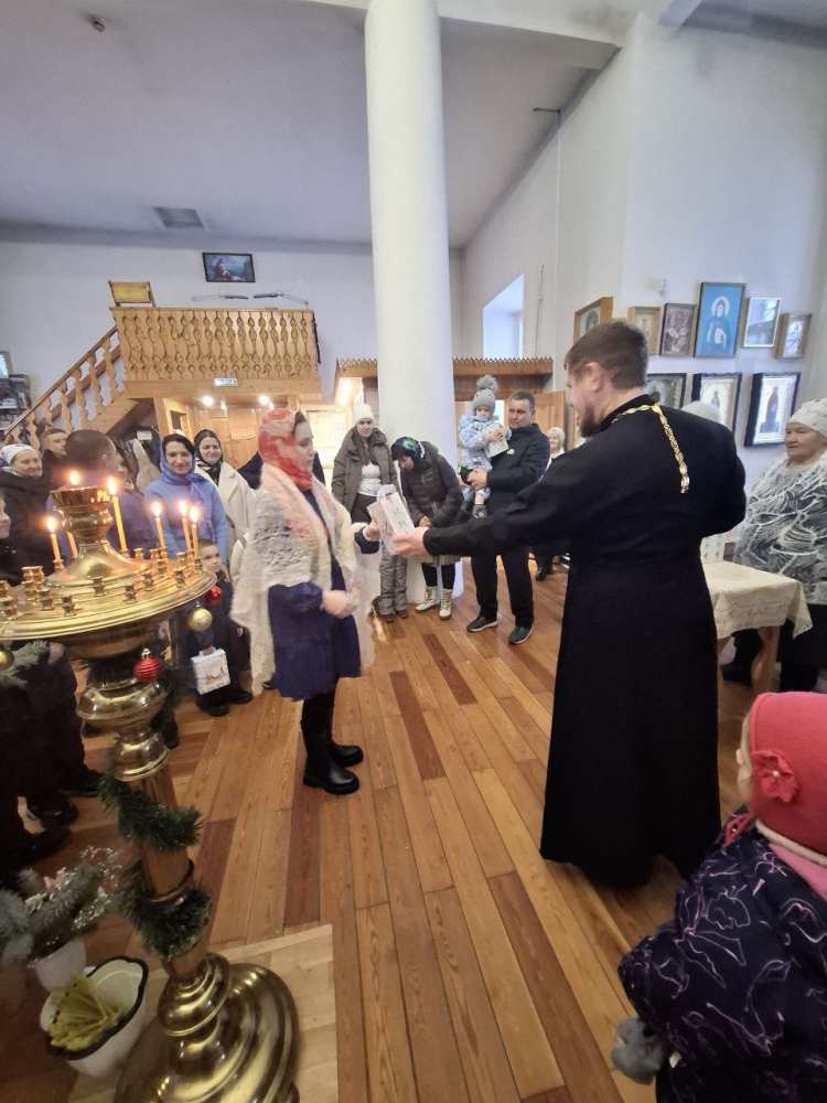 С детьми спели тропарь Рождества и рассказали стихи. О. Александр подарил всем подарки.