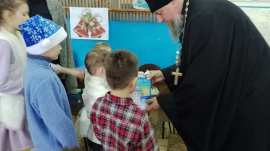 Все присутствующие детки провели весело время за весёлыми играми и конкурсами. Настоятель храма священник Александр Фомин обратился к присутствующим с посланием Патриарха Московского и всея Руси Кирилла и поздравил всех с праздником. Так же все присутствующие детки получили сладкие подарки и небольшие сувениры, которые изготовили члены семьи настоятеля храма своими руками.