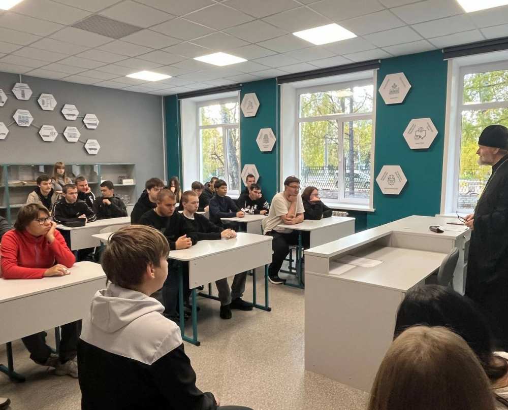 7 октября 2025 года в аудитории Сенгилеевского отделения ОГБПОУ УКГиП прошла духовно-нравственная беседа священника со студентами по теме Рождественских чтений: «Просвещение и нравственность: формирование личности и вызовы времени».