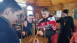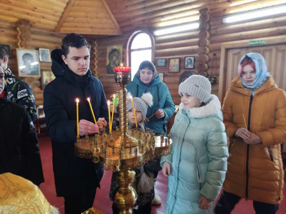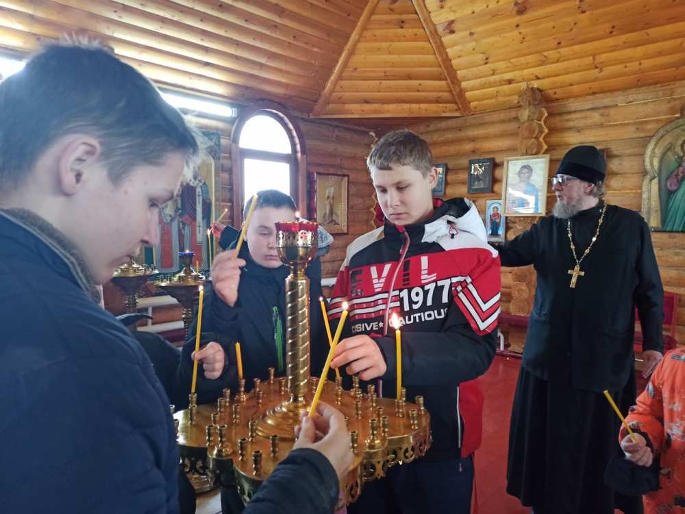 Настоятель храма отец Александр встретил ребят и учителей и рассказал о храме, показал детям как правильно креститься, ведь к сожалению многие не знают. Все дети поставили свечи и попросили Господа каждый о своём. Батюшка приглашал ребят в месте с родителями приехать на службу, поучаствовать в Таинстве Святого Причастия. Всех окропил Святой водой, благословил и подарил для школы книги, Библию для детей с иллюстрациями, книгу о святых мучениках. Некоторые мальчики подходили и просили записать имена их родных воинов, которые сейчас находятся на СВО.