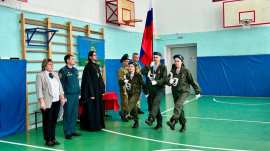 Отец Евгений обратил внимание учеников на приобретение духовно - нравственных ориентиров, призвал к уважительному поведению в отношении старших и одноклассников, напомнил о важности приобретения патриотических чувств и самосознания. Пожелал успехов в учёбе.