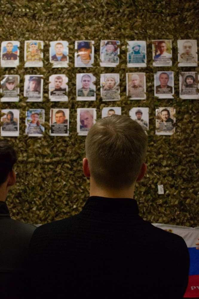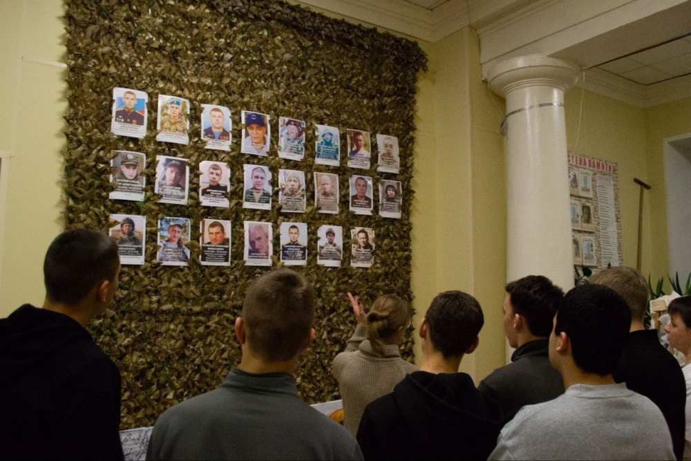 3 декабря 2025 года, в День Неизвестного солдата, для студентов Колледжа агротехнологий и бизнеса ФГБОУ ВО Ульяновский ГАУ, руководитель гуманитарного центра «Всё для Победы» прихода святой мученицы Татианы, Марина Витальевна Тархова, с заместителем директора по учебно-воспитательной работе М.В. Валяйкиной и педагогом-организатором Ю.В. Бутуевой провели обзор у фотовыставки, посвященной бойцам, погибшим в зоне проведения специальной военной операции.