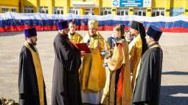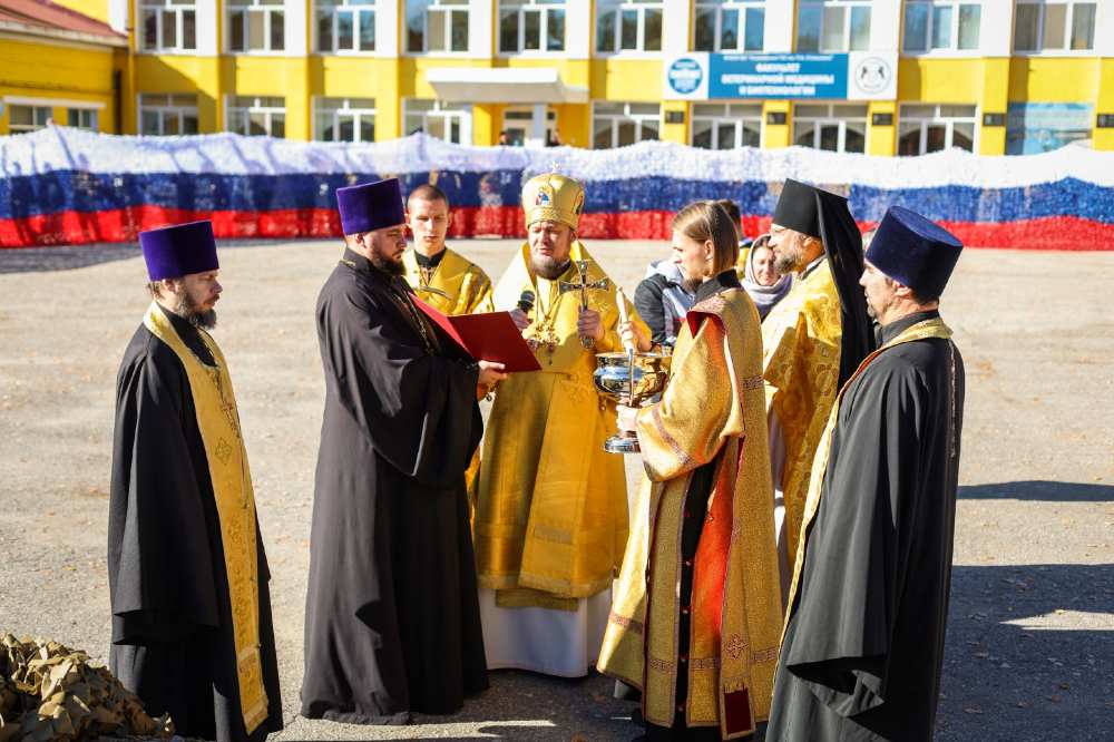 По окончании богослужения епископ Мелекесский и Чердаклинский Диодор освятил стометровый Российский флаг, который сплели сотрудники и студенты УлГАУ. Флаг был изготовлен в рамках федерального гранта и будет развернут на День Победы в Великой Отечественной войне 9 мая 2026 года на Поклонной горе в Москве.