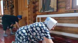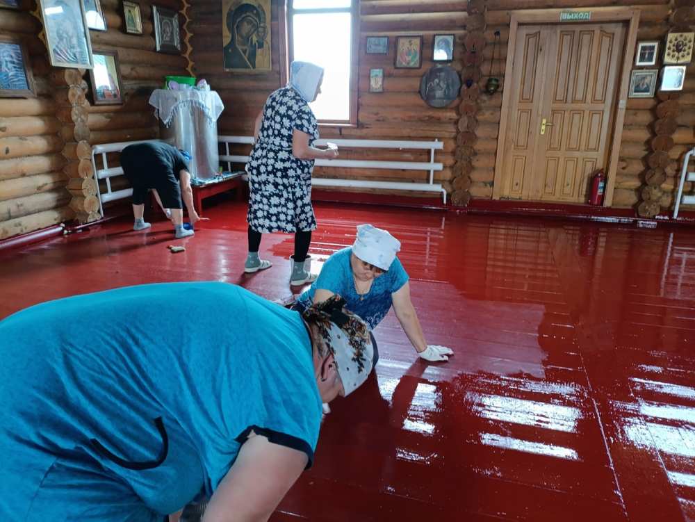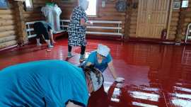 16 июня 2025 года прихожанки и активистки Центра активного долголетия "Надежда" пришли и покрасили полы в храме.